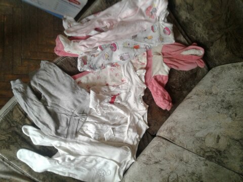 Пакет вещей за 4 киндера. Все вещи с пятнышками но хорошие. Отстирывать не пробовала. Где то от 3 до 9 месяцев .