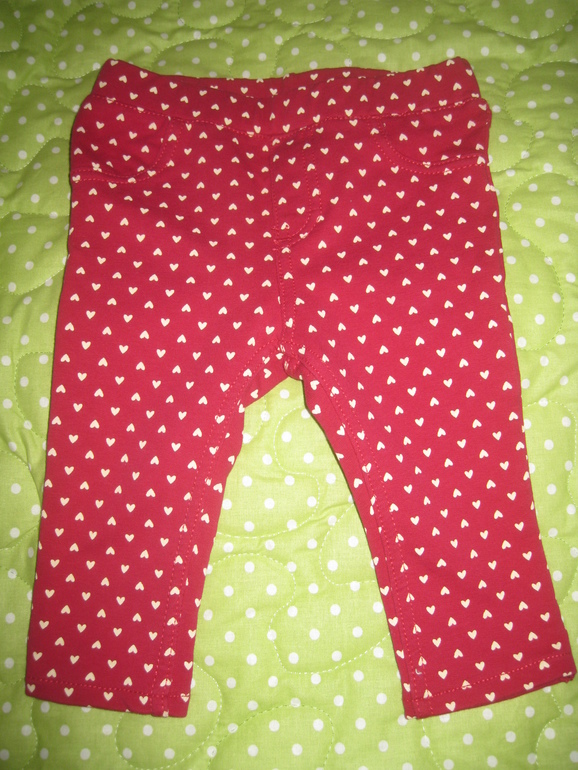 4. Легинсы/брючки красные в сердечко НМ р. 68 (хорошо тянутся) - 100 руб