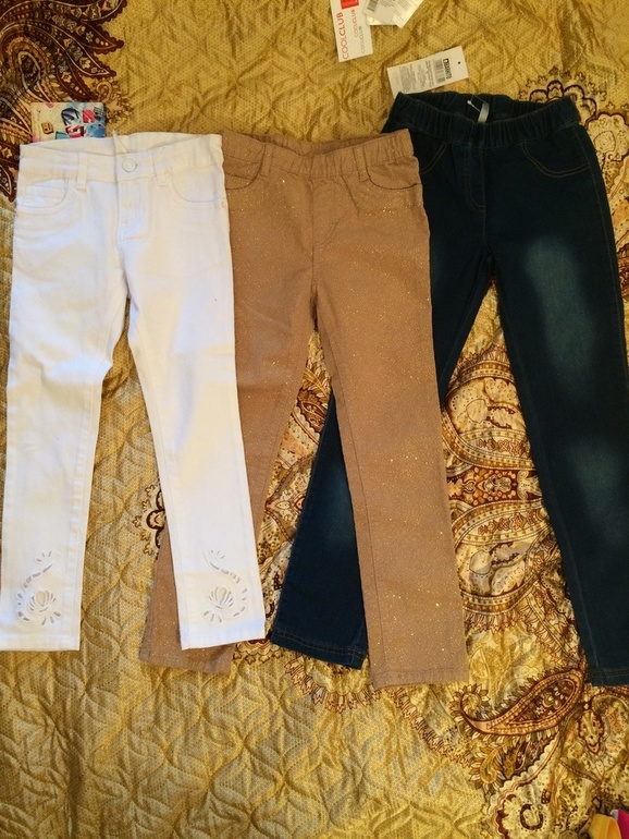Белые джинсы acoola 122 500р, песочные с блестками h&m 122 500р, синие баркитто 122,128 по 400р