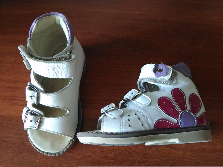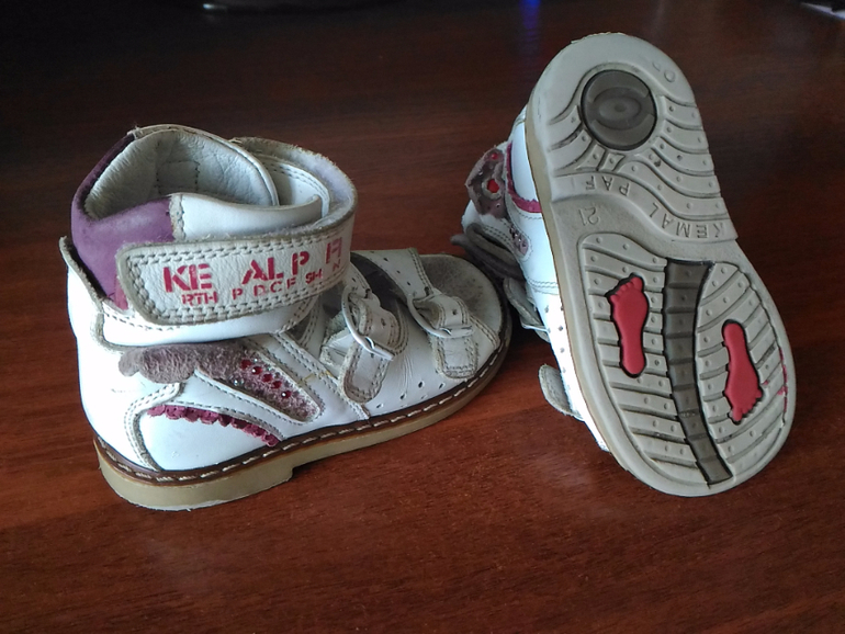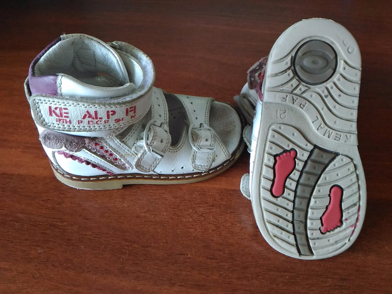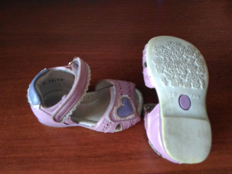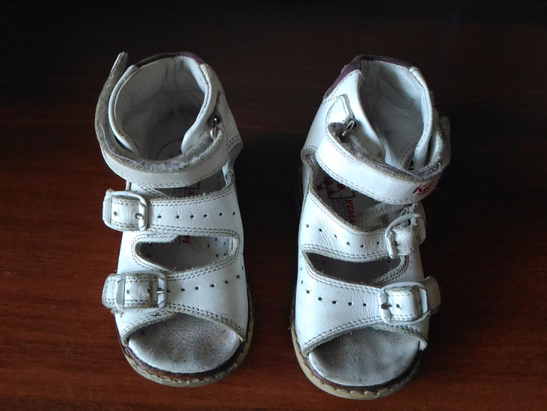 4. Кожаные босоножки. В хорошем состоянии. На липучке. Подходят на ножку любого объема. Жесткая пятка. Для первых шагов. 20 размер. 300р.