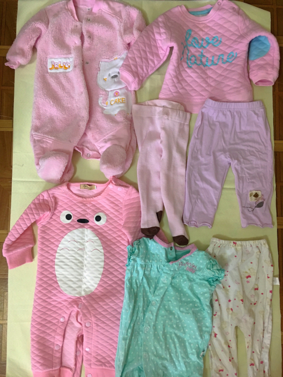 Девочка 0-6 мес.(56-68 см.)Красивые и качественные вещи на девочку! Свитшот нежно розового цвета, комбинезон такого цвета и материала; слип теплый розовый 70см, песочник бирюзового цвета, лосинки нежно сиреневого цвета с аппликацией, колготки розовые, штанишки х/б. Все носили недолго или одивали по несколько раз. Сами убедитесь в качестве! Самовывоз из Старых Химок!