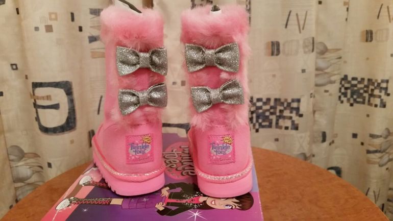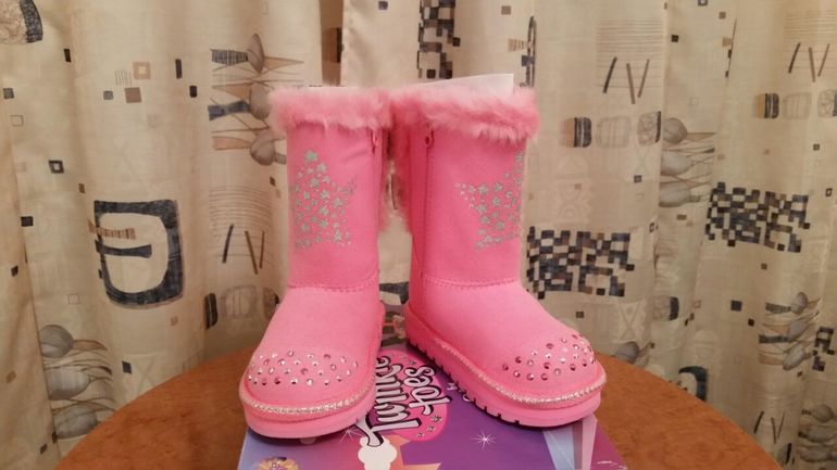 Новые Сапоги Skechers материал верха замша, материал утеплителя искусственный мех, передняя панель с блестящими ажурными блестками, которые мигают с каждым шагом! Размер 23, длина стельки 14 см. Цена 2400 руб.