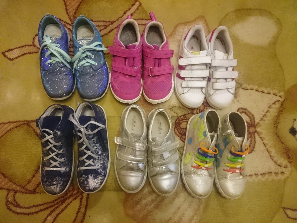 1. Кроссовки Primigi, переливаются очень красиво, стелька кожа, р. 34, в размер. в хорошем состоянии. цена 1500 руб.