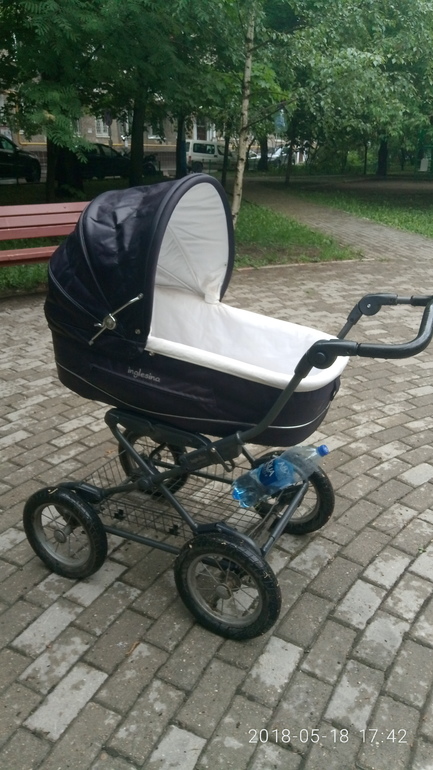 Коляска после 3 детей, но со своей задачей справляется исправно. Цвет не выгорел, загрязнений и дырок нет.