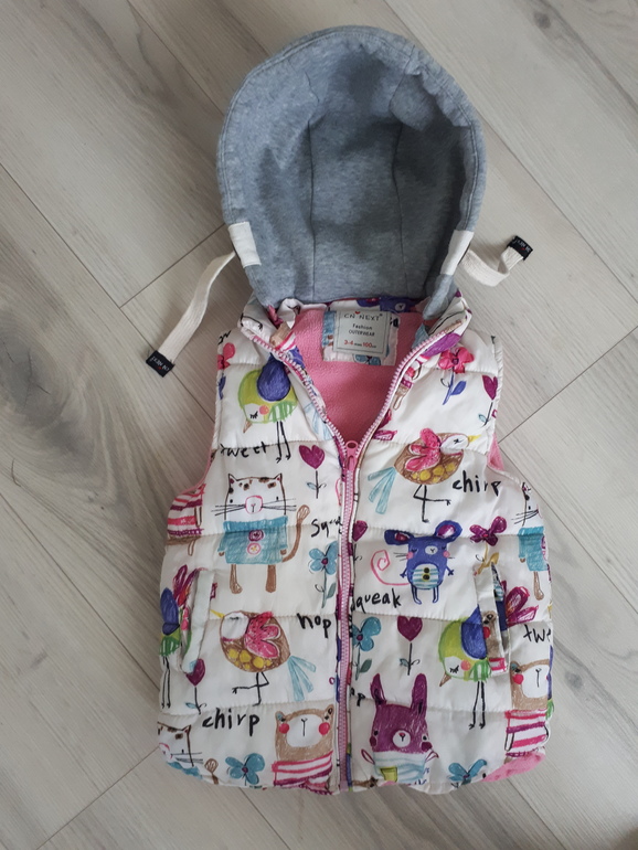 5. Теплая жилетка на синтепоне. Фирма указана Next, но такой принт фидела много где. Состояние хорошее. 600 рублей.