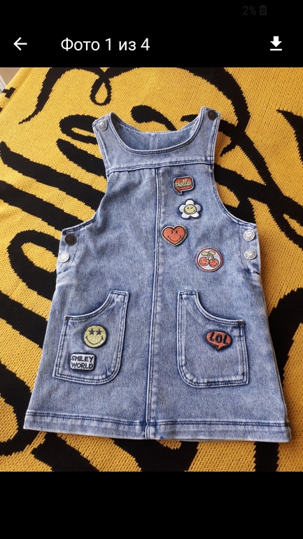 11. Джинсовый стрейч сарафан 104 размера. Пойдет и на 98 и на 110. 400 рублей