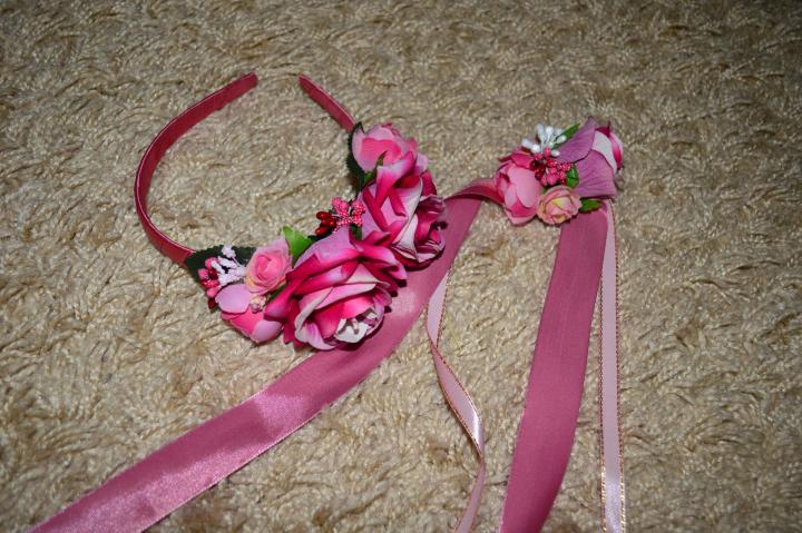 шикарный новый комплект для девочки состоящий из ободка и повязки- можно вплести в косу или повязать на руку, будет отличным украшением к платью. Заказывала специально под сарафан, но переросли и одеть не пришлось. Покупала за 1350р.
