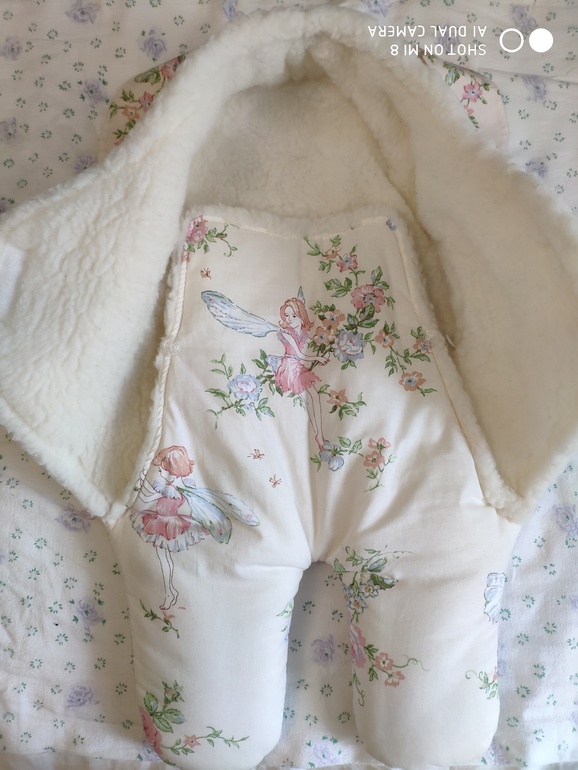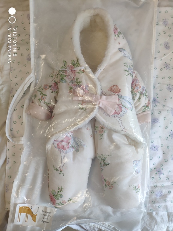 Этот чудесный конверт я заказывала на выписку из роддома в конце октября. Потом быстро похолодало и мы купили зимний. Комбинезон на овчине, верх хлопок. Подойдёт на прохладную весну. Рост примерно от 52-60. Цена 2000. Я нахожусь в городе Воронеж.