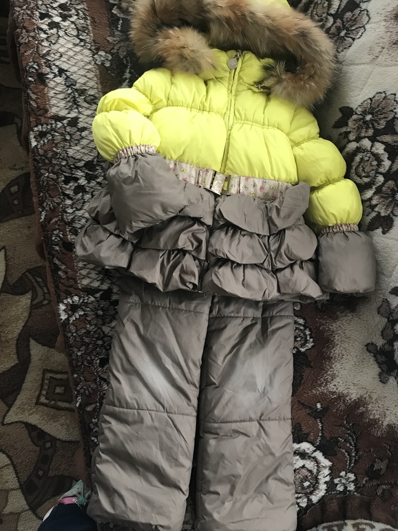 Комплект на изософте! Носили одну зиму. Немного пострадали коленочки, чуть белесые. Но на ребёнке не сильно бросается в глаза.