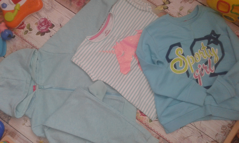 8. Пакет Futurino 128: спортивный костюм х\б (с нюансами небольшими), свит и топ (в отл сост) - все за 450р.