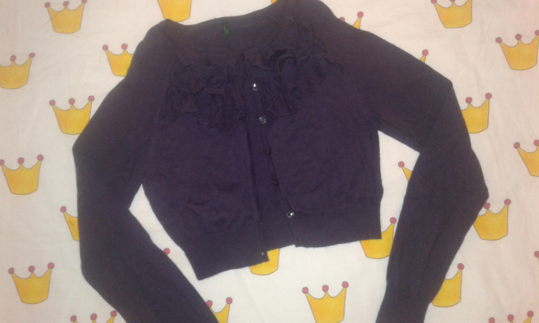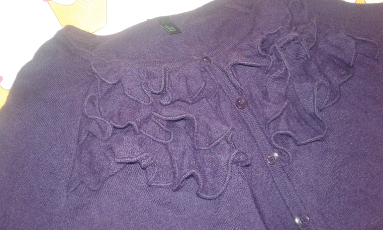 23. Укороченный шерстяной кардиган с жабо. Темно-фиолетовый. 128+ отл 300р.