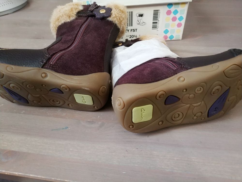 Сапоги Clarks размер 20 1/2, новые. Состав - 100% кожа, носок прорезиненный, текстильная подкладка, подошва полеуретан. Стелька кожаная, не смогла вытащить, по замерам 13 см.