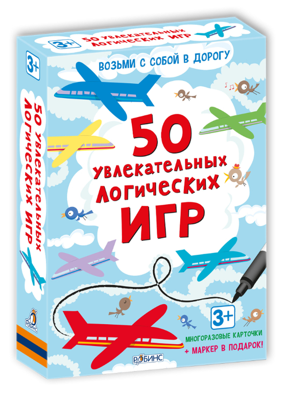 Увлекательный набор «100 логических игр для путешествий» создан специально для маленьких активных путешественников! В наборе ты найдешь специальные карточки с играми, головоломками, заданиями для развития логики, смекалки и творческого мышления, а также маркер, которым можно рисовать и писать. И не переживай за ошибки, поскольку поверхность карточек обладает стирающимися свойствами. Ты можешь играть и рисовать снова и снова! Играй и развивайся! Возьми с собой в дорогу набор «100 логических игр для путешествий», и твоя поездка станет интересней и увлекательней!