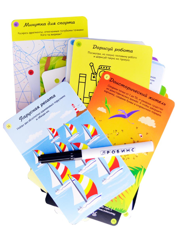 -В комплекте есть маркер на водной основе, которым можно писать на карточках, а потом с лёгкостью стирать его .