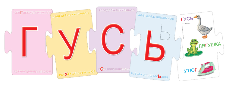 «АЛФАВИТ» - уникальное пособие для изучения букв и обучения чтению, состоящее из 33 карточек-пазлов. Карточки «АЛФАВИТ»