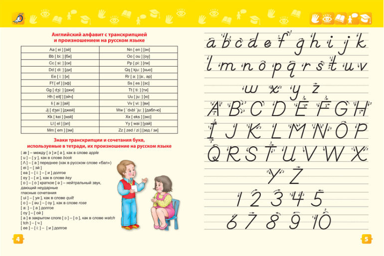 Это практическое пособие для начальной стадии обучения английскому языку, в котором вы найдете активити-задания, прописи с линиями направления письма, словарик с транскрипцией. Пособие разработано Т.Б.Клементьевой , кандидатом психологических наук и практикующим методистом и педагогом. С помощью этой рабочей тетради ваш ребенок: Запомнит как правильно произносятся буквы английского алфавита; Познакомится со значками транскрипции; Научится писать буквы и их соединение; Пополнит свой словарный запас. Рабочая тетрадь предназначена в качестве дополнительного пособия по английскому языку для дошкольников и младших школьников. Важно: Учебное пособие и программы Т.Б.Клементьевой рекомендованы Министерством образования и науки для использования в образовательных учреждениях.
