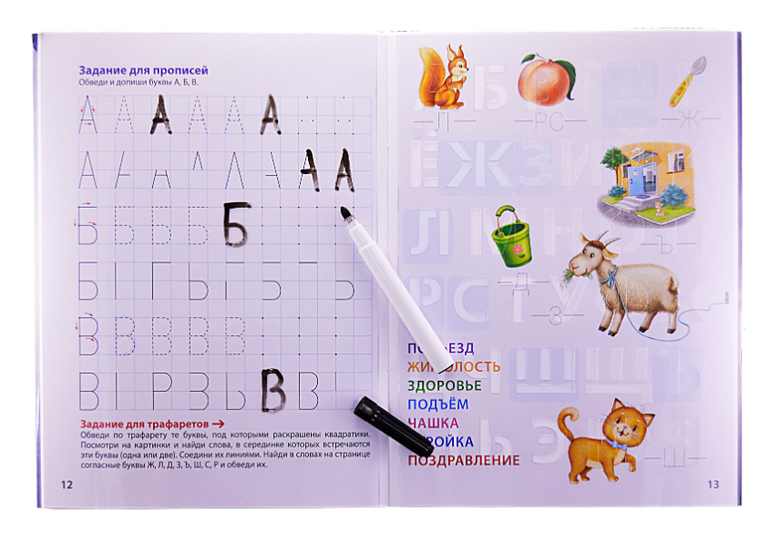 • Фломастер легко стирается: задания можно выполнять снова и снова.