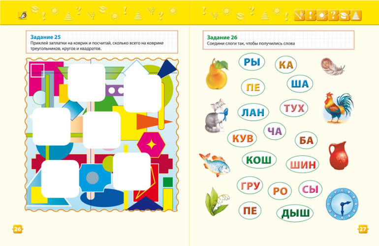 легко складываются в слова, а на обратной стороне вы найдёте задания повышенной сложности с прописями для обучения письму.