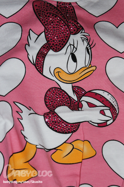 Плотненький трикотаж кофточки, на плечике 2 кнопочки. Стразики красные на бантике и ботиночках у девочки. Юбочка сделана небольшим баллончиком на подкладочке, сверху материал как слегка жатый.