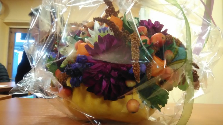 Во 2м классе помимо стандартного подарка корзина+конфеты+блокнот+ручка