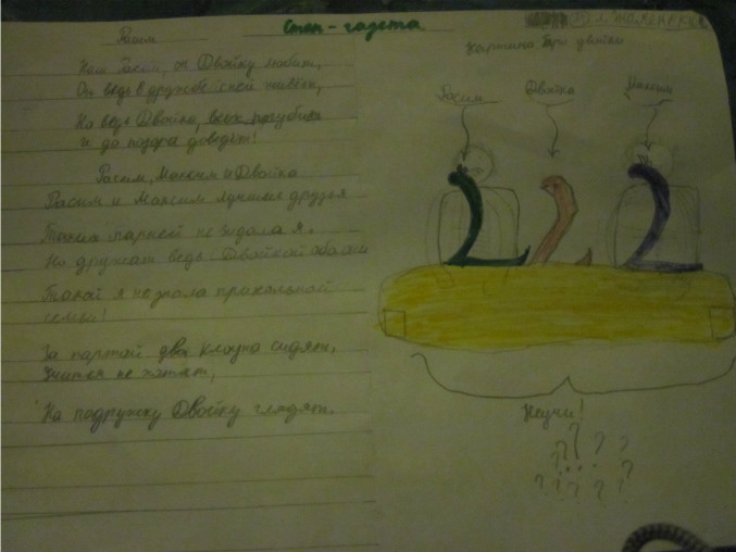 (Это карикатура + эпиграмма на двух самых плохих учеников в классе, если кто не понял)