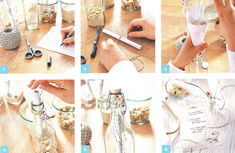 Подготовка к школе. О вещах.Для нас это первое сентября уже шестое. :) Уже не переживаем по поводу букетов, тетрадок, выбора рюкзака. Вообще, кажется, что моему школьнику все равно. Но мне хочется все-таки как-то выделить этот день, чтобы было что-то интересное. Листала кулинарный журнал и наткнулась на идею оформления карточек для рассадки гостей. Просто, но в то же время празднично. Думаю, придет после школы обедать, а рядом с тарелкой будет такая "школьная" салфетка, на которой какое-нибудь пожелание написано. Или даже, как на фото, в бутылку положить. "Дорогой сын! Очень тебе сочувствую, что еще один школьный год начался … :) "