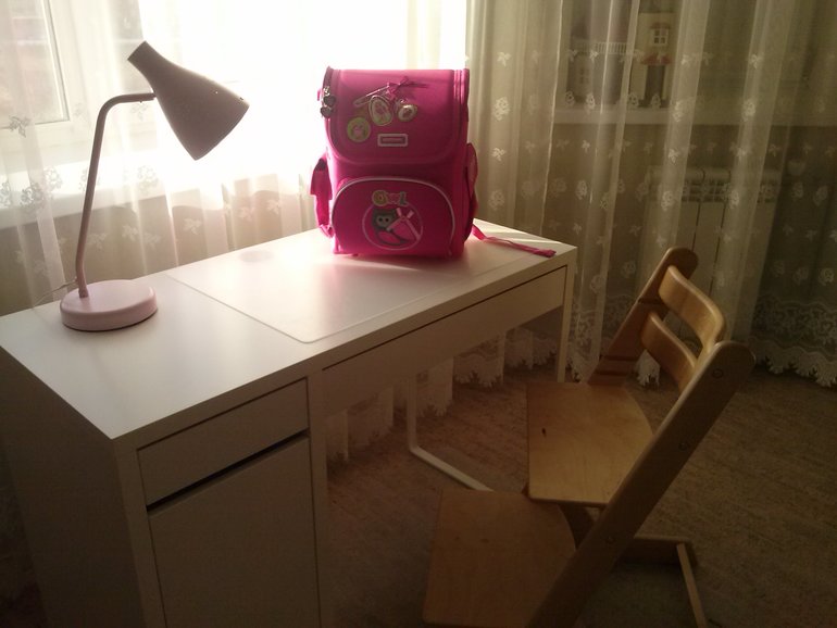 Подготовка к школе. О вещах.Вот и появилось рабочее место у нашей первоклашки. Стул понравился всем домочадцам, легкий, удобный и качественный. Стол купили на днях, собрали сегодня. Портфель куплен был еще в марте с приличной скидкой! Еще купили напольное покрытие и на стол, вкладыш для канцелярии в стол и лампу