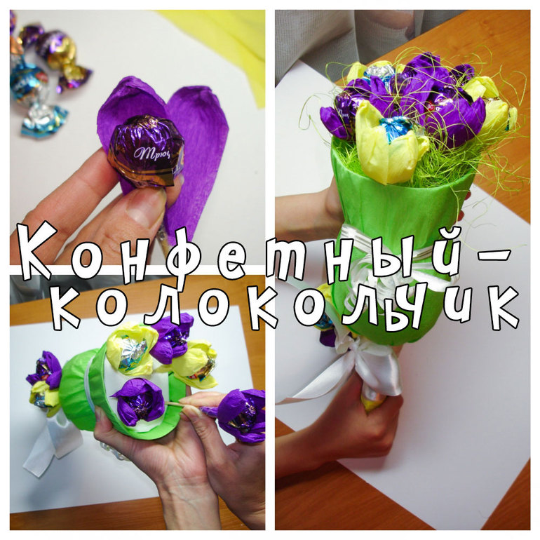 Наши поделкиВы любите конфеты и цветы, значит этот мастер-класс именно для Вас! Как изготовить оригинальный подарок букет-колокольчик из конфет, Вы можете посмотреть на блоге http://family-craft.com/podelki-svoimi-rukami/kolokolchik-buket-iz-konfet/ Тут есть подробное описание с фотографиями. Если Вас заинтересовала наша статья, подписывайтесь на рассылку наших новостей.