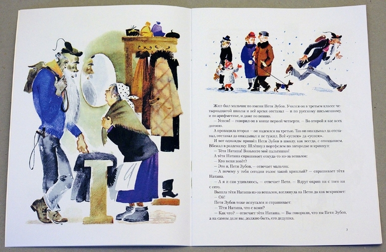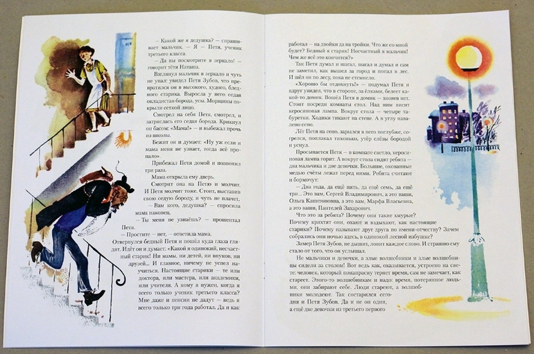 Данное издание проиллюстрировано Ириной Казаковой. До этого сказка выходила с ее рисунками в 1975 и 1985 годах. Эти иллюстрации кажутся очень удачными. По крайней мере, жутковатые школьники-старички с длинными бородами и рогатками, перепрыгивающие через ступени, висящие на подножке трамвая, играющие в классики и лазающие по деревьям, точно запомнятся юному читателю. Сказка ложь, да в ней намек...