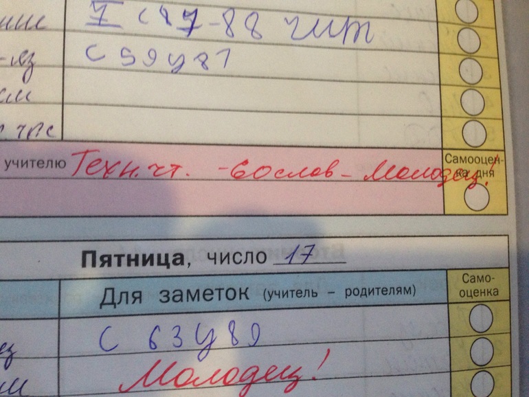 Дочка молодец!!!!Здорово, у Вас дневники есть. У нас их запретили в первом классе.Можно я тоже похвастаюсь? Нас в феврале последний раз проверяли: 82 слова. Но у нас не пересказ пока, а ответы на 3 вопроса по тексту.