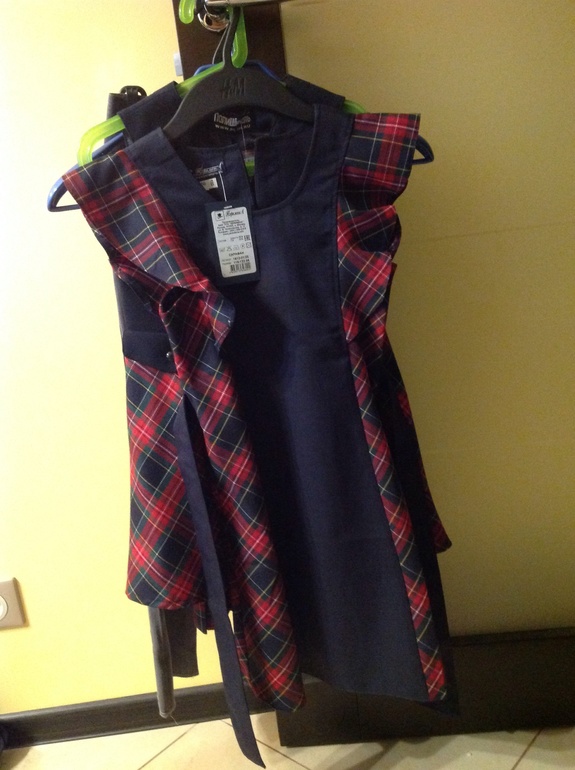 У нас похожая форма. Сменка будет темно-синяя, блузки белые, колготки синие, белые или красные под цвет клетки. Если вы уже купили белые туфли, то подойдут только белые колготки и белые блузки.Лучше темную сменку взять, а белые туфли на праздники оставить, если есть возможность.