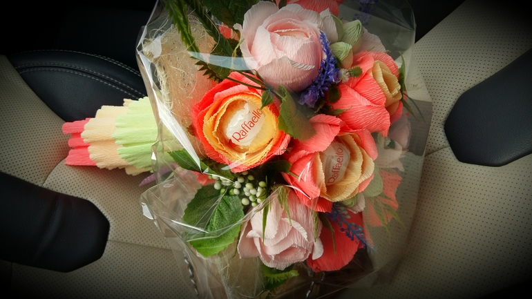 Я уже заказала у подружки букетик --она флорист, привезет мне его 31 вечером. Заказала маленький типа свадебного по форме и размеру но в осеннем стиле-чтобы дочке держать удобно было))