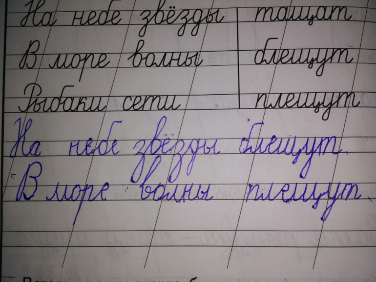 Жена дома ребенка развивает. В школе, естественно, до этого пока не дошли. Забавно, у ребенка уже есть свой почерк: