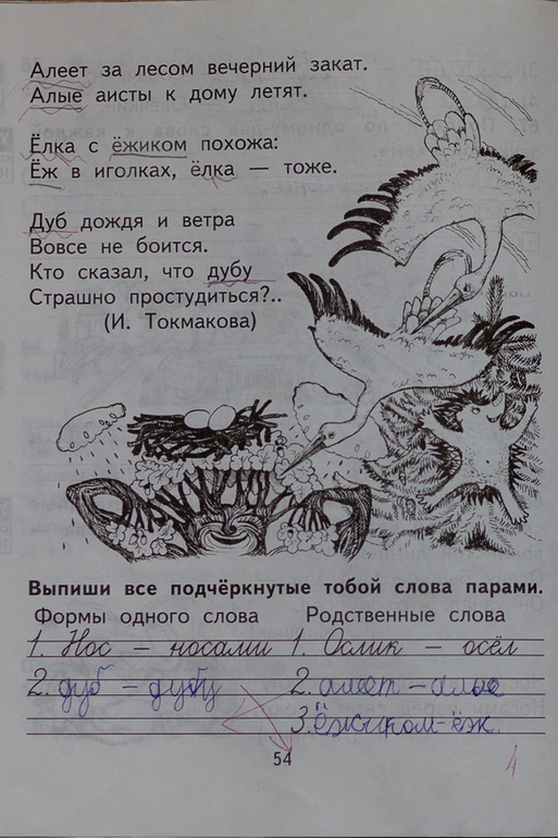 Может "дуб-дубу" нужно было в оба столбика писать? Но в данном конкретном случае, я думаю, что только в первый. Да и "алеет-алые" это же не форма одного слова? Что-то я начинаю сомневаться в своих умственных способностях. Рассудите и объясните мне, если учитель все же прав!