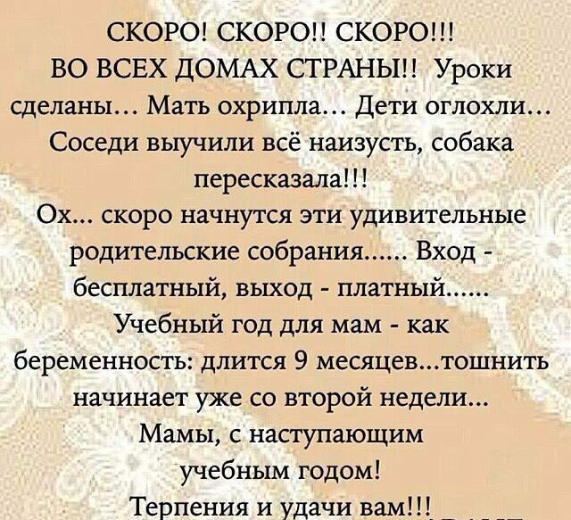 Для тех, кто его пережил, это не "скоро, совсем скоро", а " впереди два с половиной месяца без школы!!!!" ))))