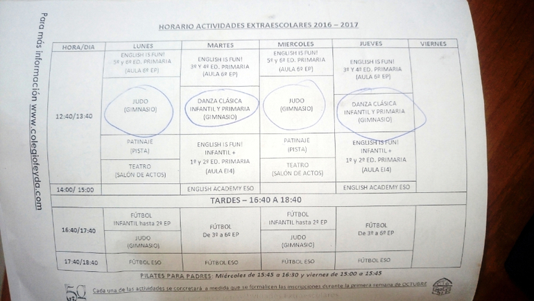 Смущало меня расписание в сиесту. Отдых от занятий запланирован с 12:30 до 15 часов. Полчаса - это на обед, а потом дети носятся по площадке под наблюдением одной из учительниц. Решила не оставлять сыну времени для безделья, записала его на внеклассные занятия.