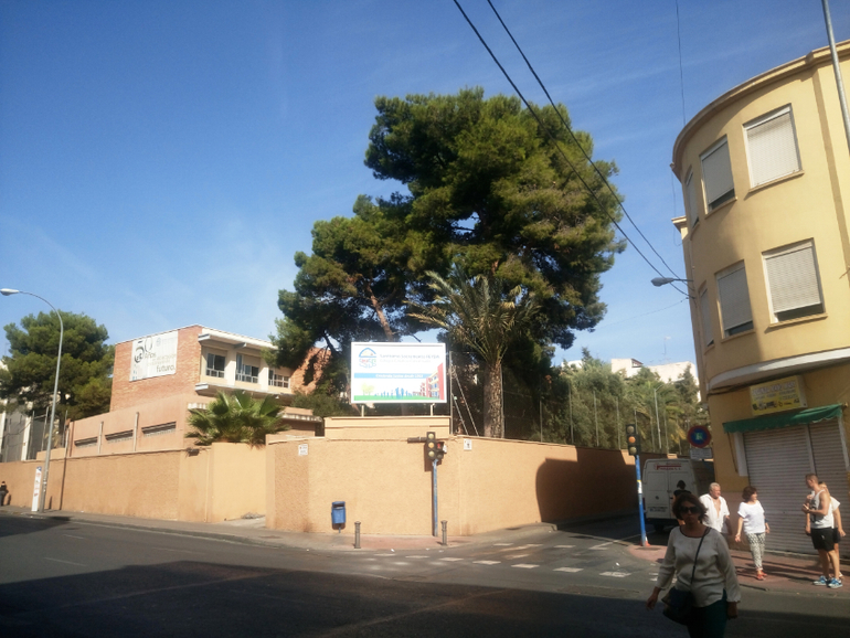 Трехметровый забор колледжа и сверху сетка.. Когда я впервые приехала в Испанию, то путала местные колледжи с тюрьмой))) Зато дети под защитой.