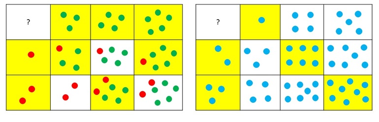 (цвет - синий, поскольку и в первой строке и в первом столбце синие точки)