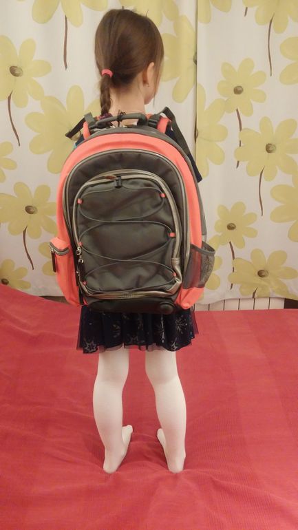 Поэтому я подумала... И купила экко. 400 грамм всего, физк форма влезет, бутылка воды и завтрак, без ужасных картинок, которые после первого класса будут не в почете, в комплекте сменка. Спинка не мягкая, до класса донесет, а мне до школы нести удобно.