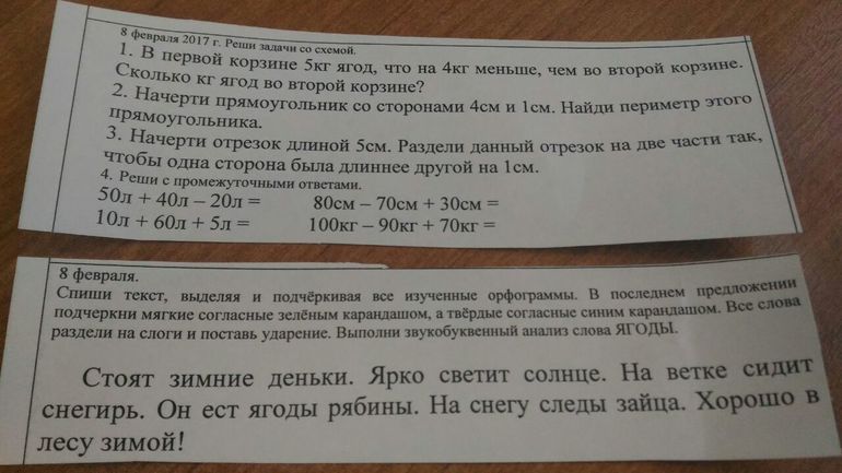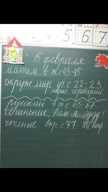 задачи со схемами, тексты обычно больше. Еще к этому пару страничек Петерсон+пара в прописях+окружайка (наклеить фотографии родителей по мере их взросления и рассказать на уроке про профессии)+ по конструированию что-то было. Все остальные уроки были типа труд и физра, поэтому к ним готовиться не надо.😣 Урааа! Каникулыыы!