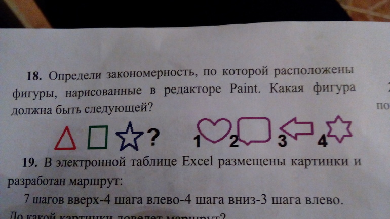 Первая задача - количество углов 3,4,5, значит, ответ звезда Давида под номером 4, или у меня с логикой швах полный. в 20 задаче думаю что ноут как более мобильная вещь.