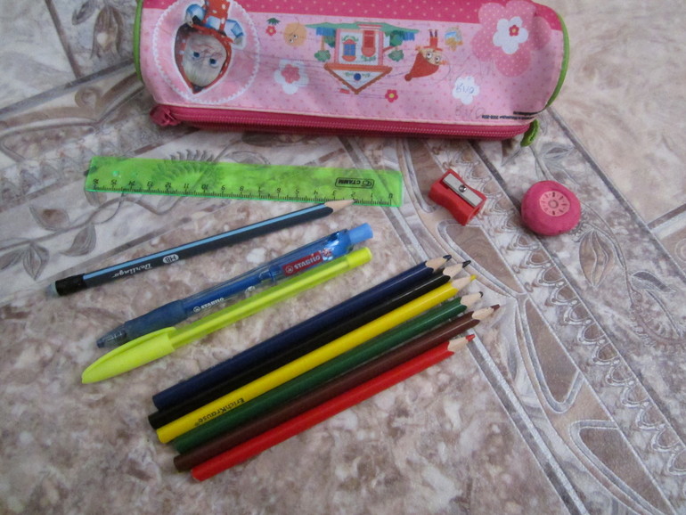 Простой карандаш, точилка, ластик обычные... с ними я не заморачивалась.