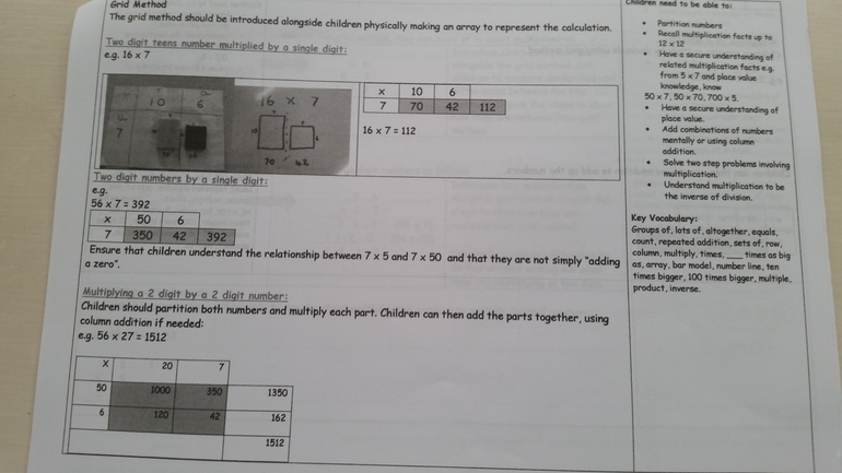 Так в нашей школе в Великобритании учат умножению, как одному из способов (тут что мне нравится, они всегда показывают разные способы и объясняют с разных сторон, а потом ребенок выбирает, чем удобнее пользоваться в дальнейшем)