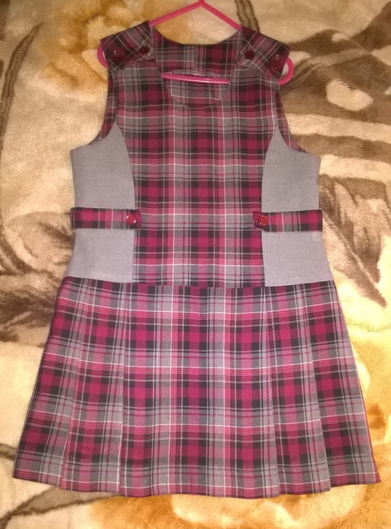 Спасибо! У нас нельзя однотонный,уже спрашивала.Вчера на собрании показали образец сарафана.Там больше серого и меньше бордового.А у вас хорошенький сарафанчик!