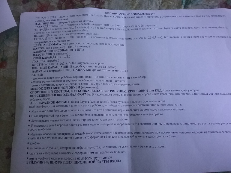 У нас собрание было в июне. Выдали список, что купить надо