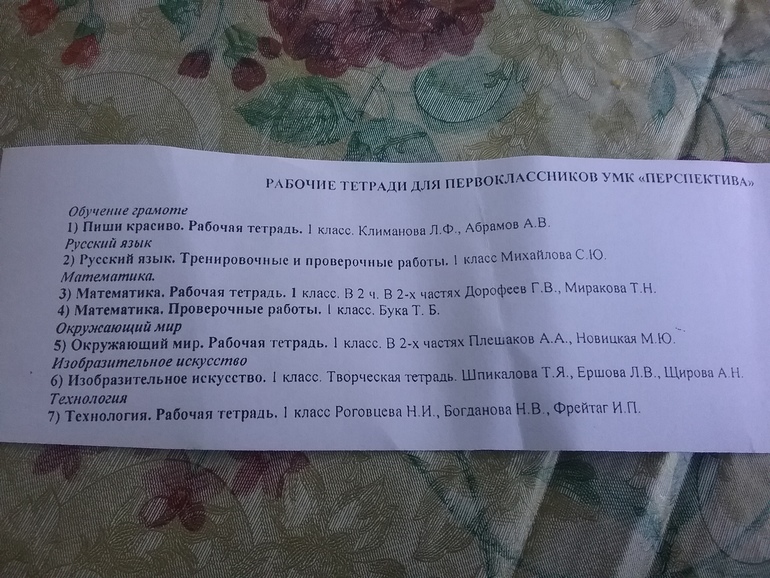 Идём в 1 класс. Программа "Перспектива". Школа выдаст учебники, тетради покупать самим. Собрание будет в сентябре.