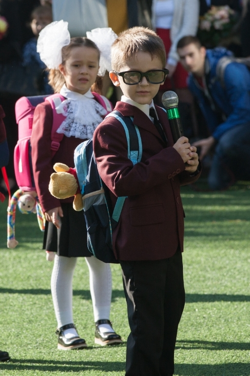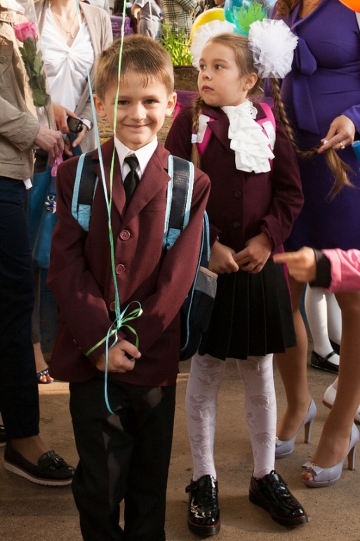 Первый день понравился: выступление на линейке, много шариков и цветов, музыка, новые лица... Учительница знакомая (она Иру учила), добрая (по крайней мере пока), в один класс с ним попал лучший друг, с которым на подготовку к школе ходили... Пришел домой очень довольный. Надеюсь, и дальше все будет хорошо)))