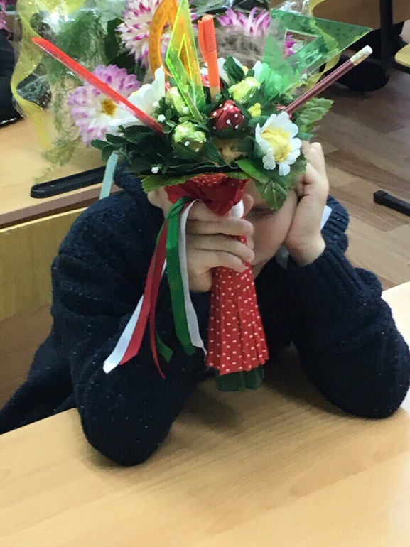 Спасибо) букет просто большой не хотелось пришлось придумывать маленький) да и жалко мне всегда цветы ( вянут быстро) , а тут конфетки и канцтовары пригодятся учителю точно!