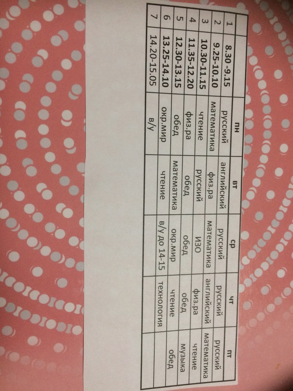 Начальная школаРасписание 2го класса удивило тем, что обед в нем учтён, как целый урок плюс перемена до и после, т.е. Суммарно 11-25-13-25 больше часа обед🤐 С учётом , что дочь не ест в школьной столовой (с собой приносит), а в пятницу обед стоит последним уроком))) после музыки, которая в 12-20 заканчивается, а урок обед заканчивается в 13-15, таким образом, ребёнок должен находится лишний час в школе, глядя, как другие дети едят👀. Очень странная потеря времени, с учётом , что нам крайне желательно уйти до обеда, в 12-20 чтоб успеть спокойно в муз.школу.