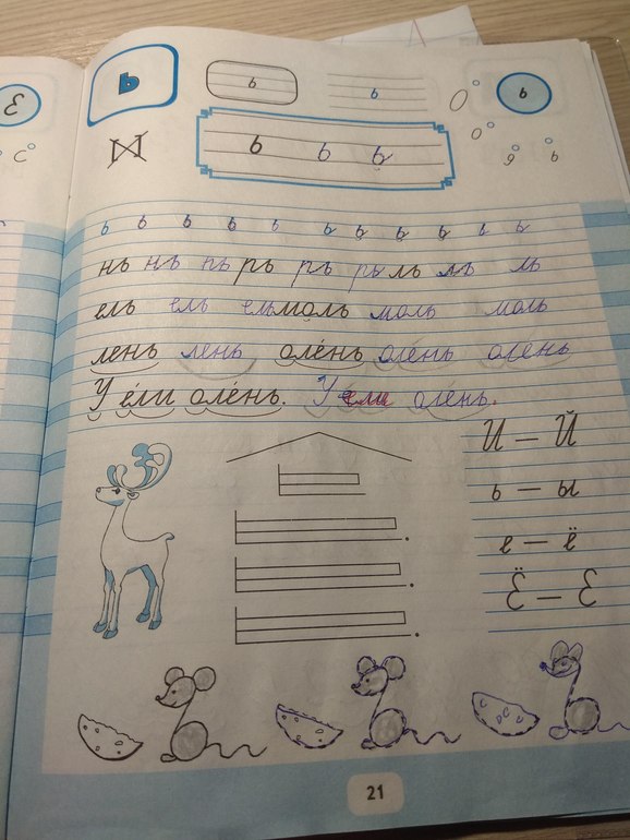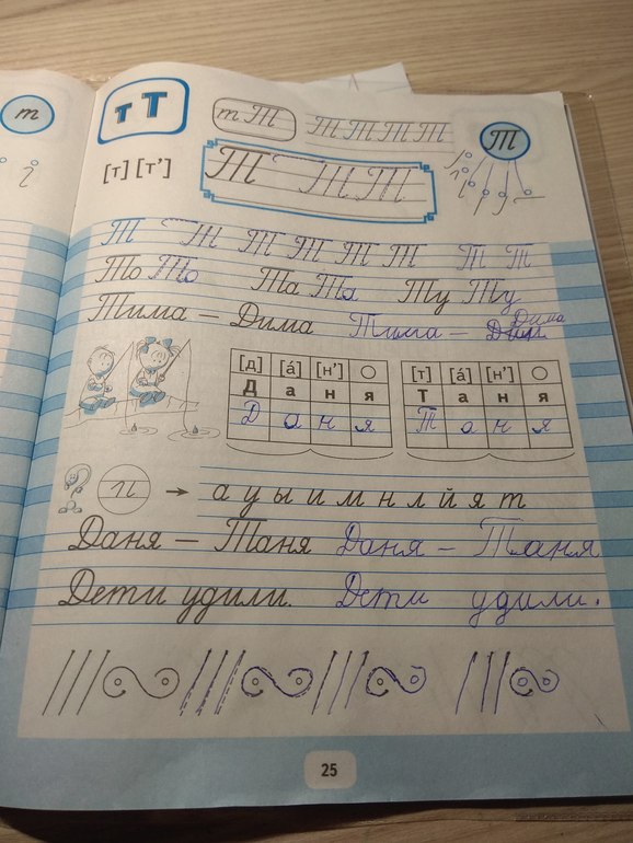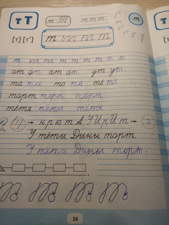 Нормальный почерк для первого класса, зачеркивания это да, лишнее, но это уже лучше чем закалякивание ) Я тут тоже за свою переживала, летом с прописями гоняла и перед выполнением дз в прописях школьных даю дочке прописи Шкляровой, хорошо в них рука ставится, знакомая так же все лето ребенка мучила и сейчас доп тетрать у них и все равно ребенок косячит периодически, а другая знакомая вообще не занималась с сыном и с школьными прописями не лезет, так у мальчика почерк аккуратнее всех в классе, и даже ровнее того что там ниже вам показывали за пример идеального письма первоклашки ) Причем я сама видела тетради этих детей, иногда делимся впечатлениями еще и с мамами детей из других классов, так могу сказать, что почти все дети пишут на уровне вашей дочери, что-то лучше получается, а что-то и похуже. Ну а грязь, это уже сложнее, моя только пару недель как стала меньше грязи в тетрадях разводить, тут не только воспитание, но еще и общая зрелость не малую роль играет.